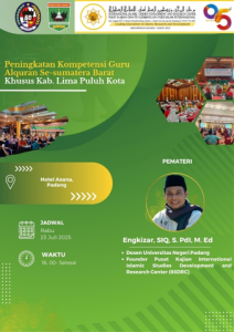 Kegiatan ini menghadirkan narasumber utama Engkizar, S.IQ., S.Pd.I., M.Ed., seorang akademisi yang juga merupakan pendiri International Islamic Studies Development and Research Center (IISDRC). Dalam sesi pemaparan, Engkizar membagikan wawasan tentang strategi peningkatan kompetensi guru Al-Qur’an, mulai dari pembahasan pengucapan makharijul huruf yang benar, kaedah-kaedah tajwid dan seni atau lagu dalam mengajarkan Al-Qur’an.